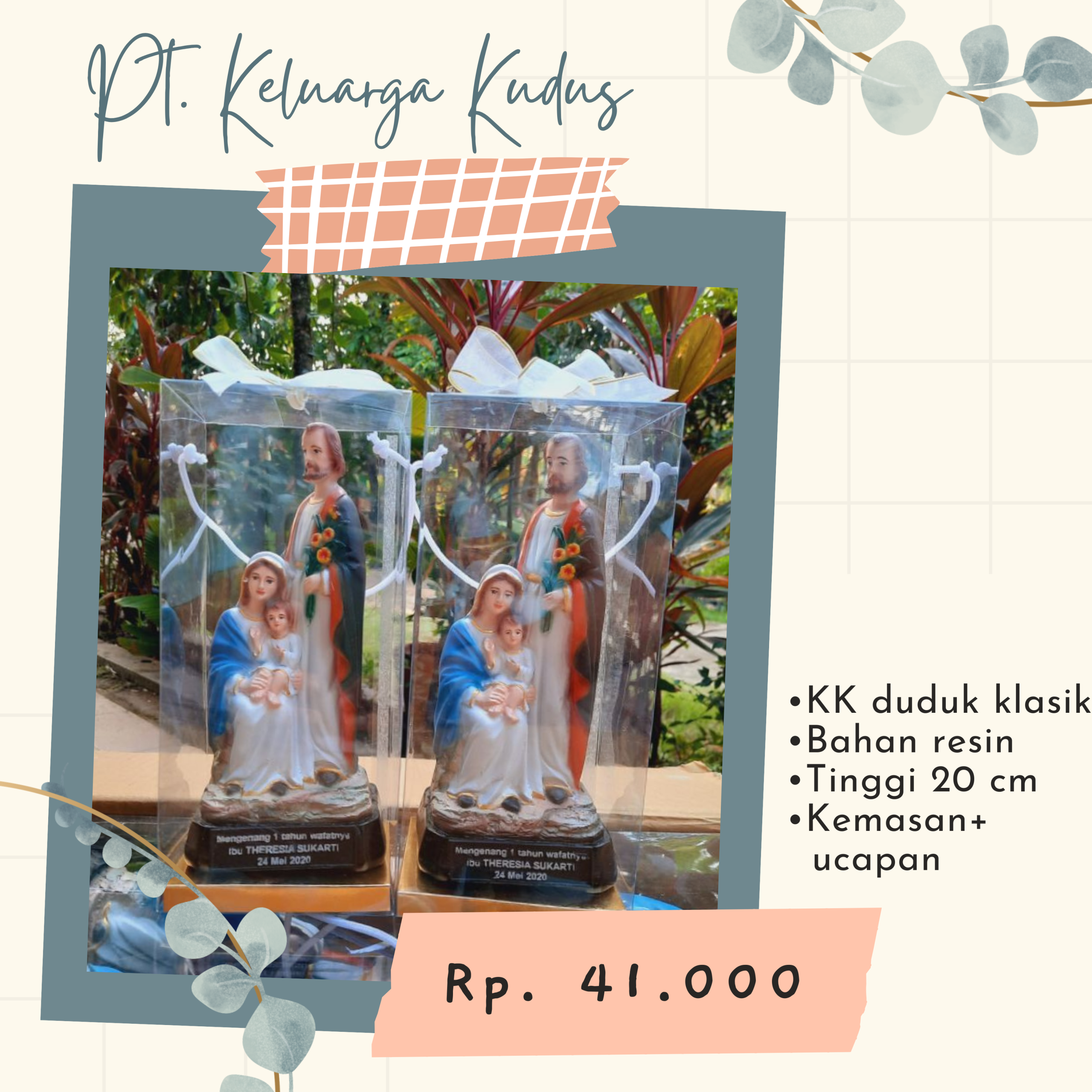 Keluarga Kudus adalah sebutan untuk keluarga Yesus bersama dengan kedua orangtuanya, Maria dan Yoseph. Patung ini versi besar ini menggambarkan Maria menggendong bayi Yesus dalam posisi duduk dengan didampingi Yoseph, suaminya.