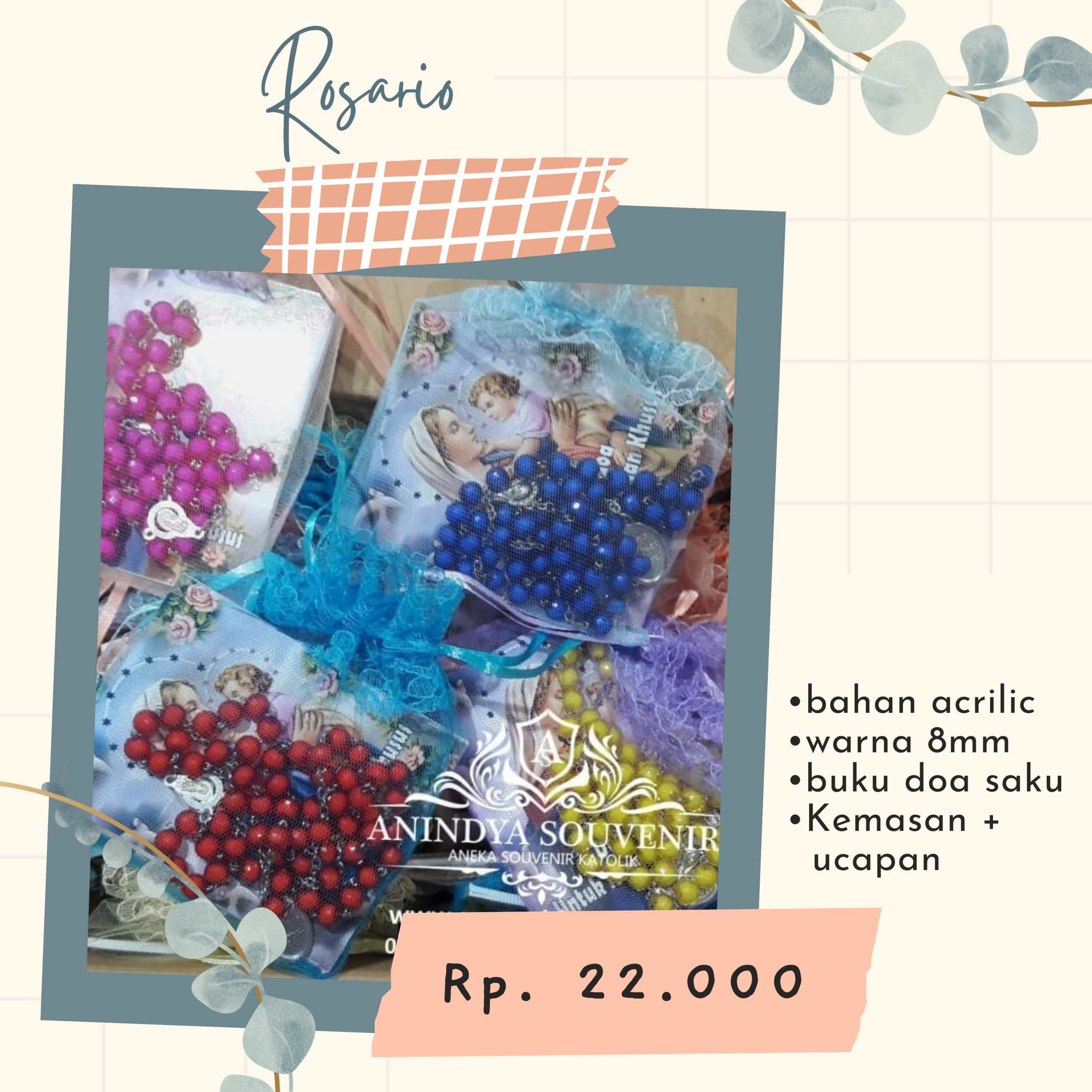 - Bahan rosario: acrilic