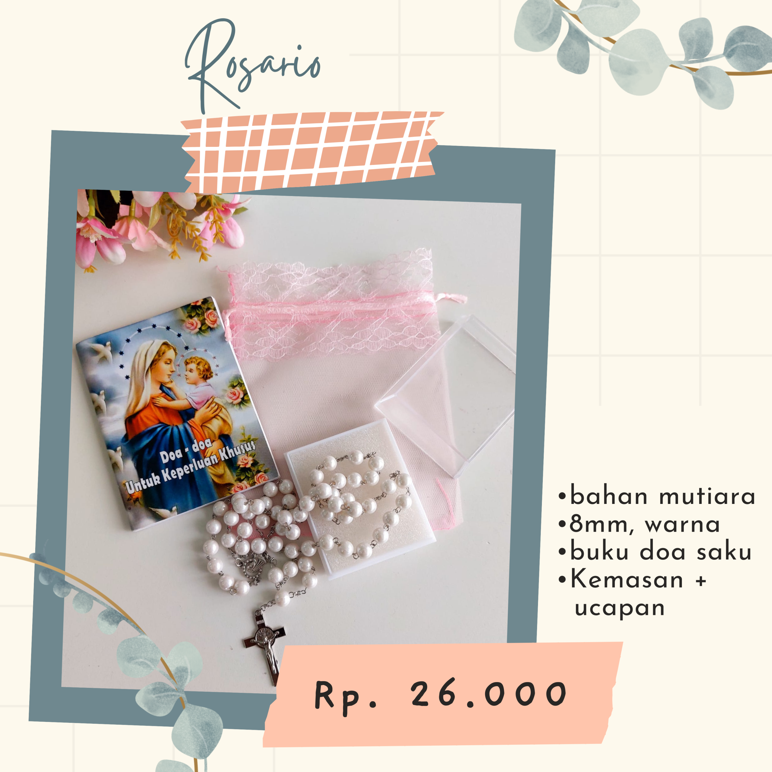 ROSARIO MUTIARA 8mm + BUKU DOA SAKU